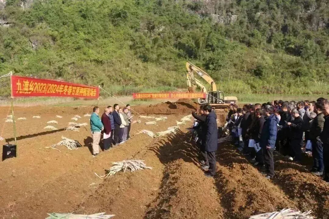近日,九渡乡在九如村青洞屯召开2023/2024年冬春甘蔗种植现场会。